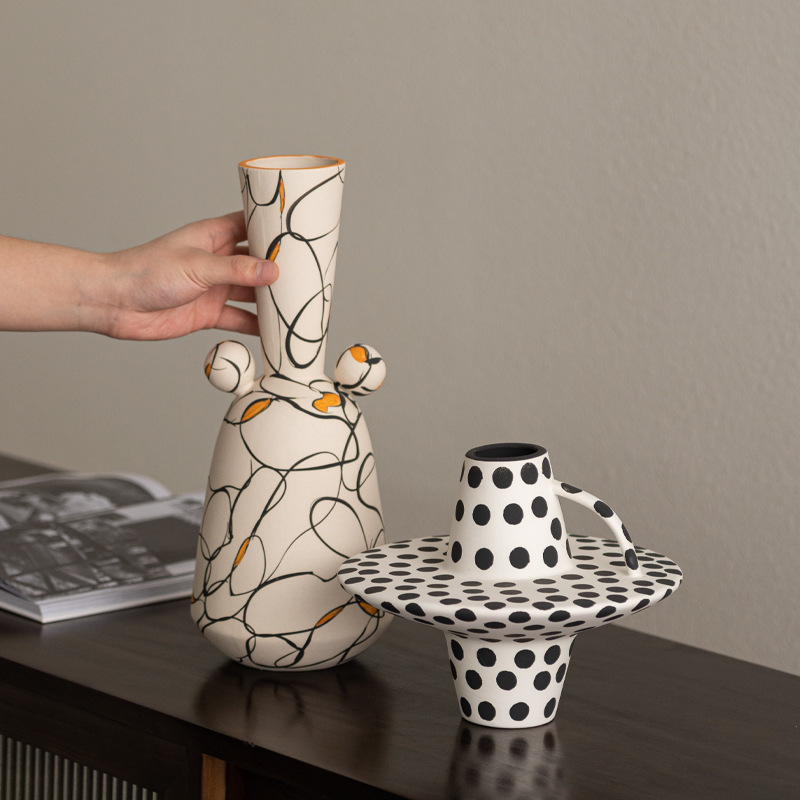 Abstract Art Ceramic Vase, inspired by the intertwining of deep-seated emotions and thoughts. The designer explores the complexity and diversity of human emotions through bold colors and unique shapes. Every stroke and curve tells an intangible story, reflecting a pursuit of freedom and creativity. This piece is not merely a container but a fusion of art and emotion, capable of bringing a unique visual impact and profound reflection to any space, resonating with viewers and sparking their imagination.