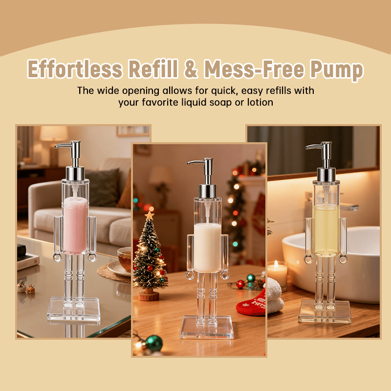 Crafted from high-quality, crystal-clear acrylic, this dispenser is both sturdy for daily use and elegantly transparent. It beautifully captures the light, adding a brilliant sparkle to your holiday decor.